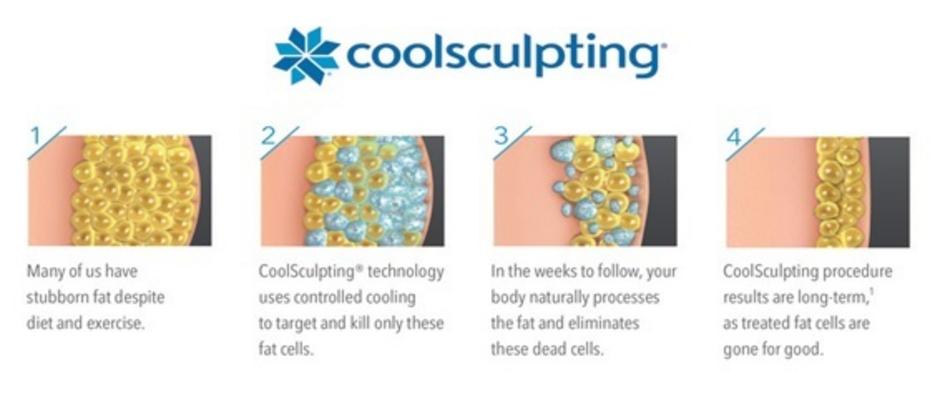 Coolsculpting is a non-surgical fat reduction treatment that uses controlled cooling and pressure to eliminate stubborn fat that will not shrink through diet and exercise alone. No general/topical anesthesia or pain medication is required. There is no downtime, and you may resume normal exercise and activity immediately after treatment. Results will gradually develop over 2 to 4 months following your treatment; coolsculpting will remove 20-40% of the fat from the treatment area. Areas can be retreated if necessary in the future.